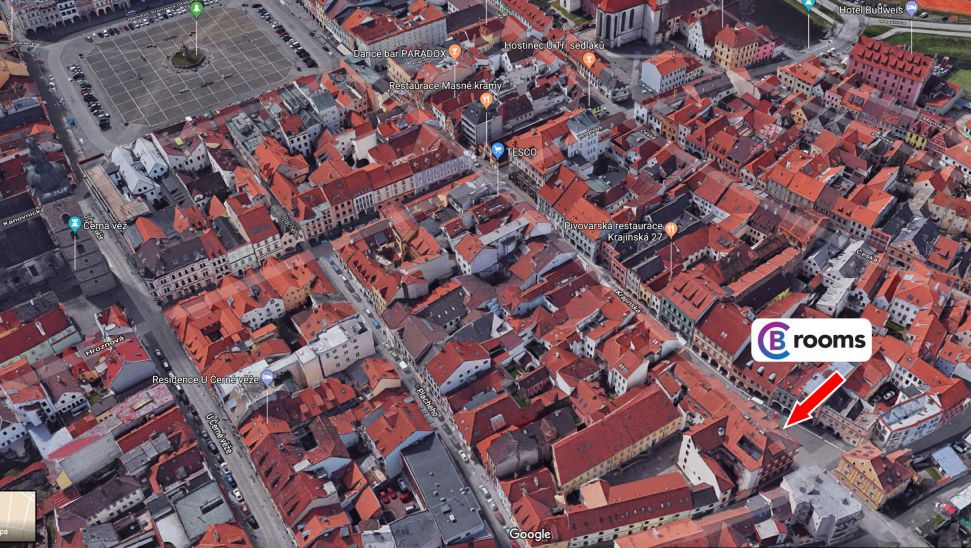 Completely new accommodation in the historical center of the city in the immediate vicinity of Přemysl Otakar II Square, 50m from the famous Masné Krámy restaurant and 100m from the Black Tower. The CB ROOMS offers 2 single twin rooms with city views, 1 quadruple Family room with a view and 1 Economy double room with a small window, bathroom, two separate toilets, two showers and a very comfortable lounge. Part of the property includes fully equipped kitchens and free wifi internet access.